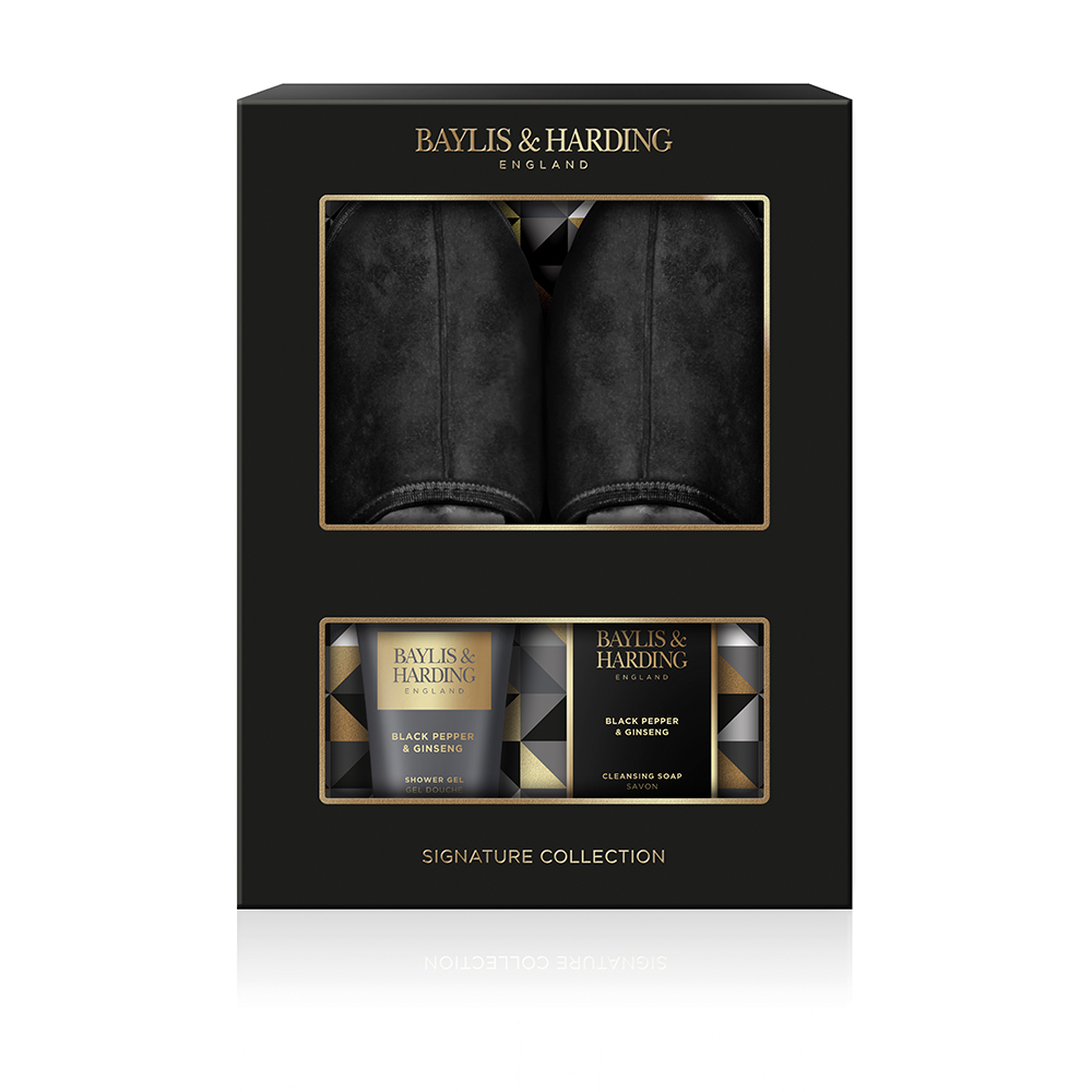 Baylis & Harding Pánská sada péče o tělo s pantoflemi Černý pepř & ženšen 3 ks