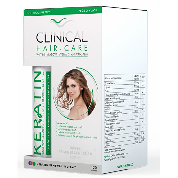 Čtyřměsíční kúra Clinical Hair-care je určena osobám se zvýšeným vypadáváním vlasů z neznámých příčin a degenerativními změnami ve vlasové struktuře (roztřepené, suché, křehké, tenké, nepružné, zplihlé vlasy, či vla