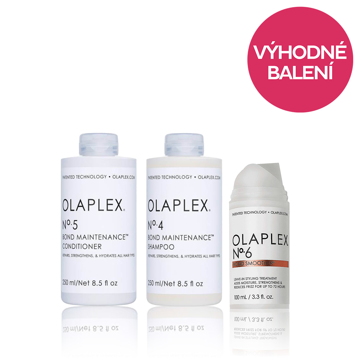 Zvýhodněné balení obsahuje: Obnovující šampon pro všechny typy vlasů No. 4 (Bond Maintenance Shampoo) 250 ml Regenerační kondicionér pro hydrataci a lesk No. 5 (Professional Bond Maintenance Conditioner) 250 ml Bezoplachový regenerační