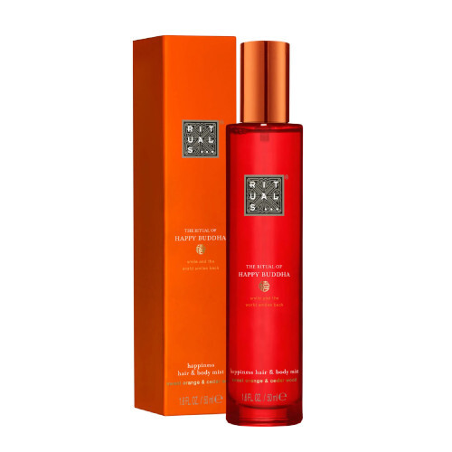 Sprej na tělo a vlasy The Ritual Of Happy Buddha vám přináší energizující vůni sladkého pomeranče a cedrového dřeva.