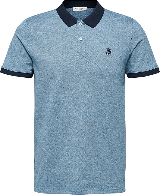 SELECTED HOMME Pánské polo triko SLHARO EXCLUSIVE SS POLO W Vallarta Blue Jacquard S.