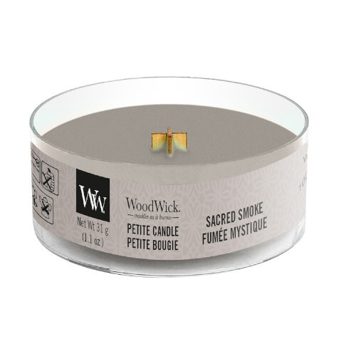 WoodWick Aromatická malá svíčka s dřevěným knotem Sacred Smoke 31 g